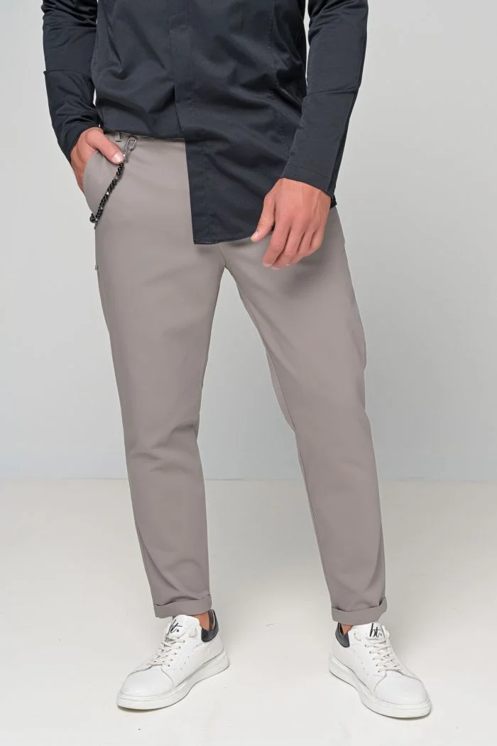 Αλυσίδα ως αξεσουάρ: Προσθέτει μια μοντέρνα πινελιά στο σχεδιασμό, κάνοντας το παντελόνι να ξεχωρίζει.
