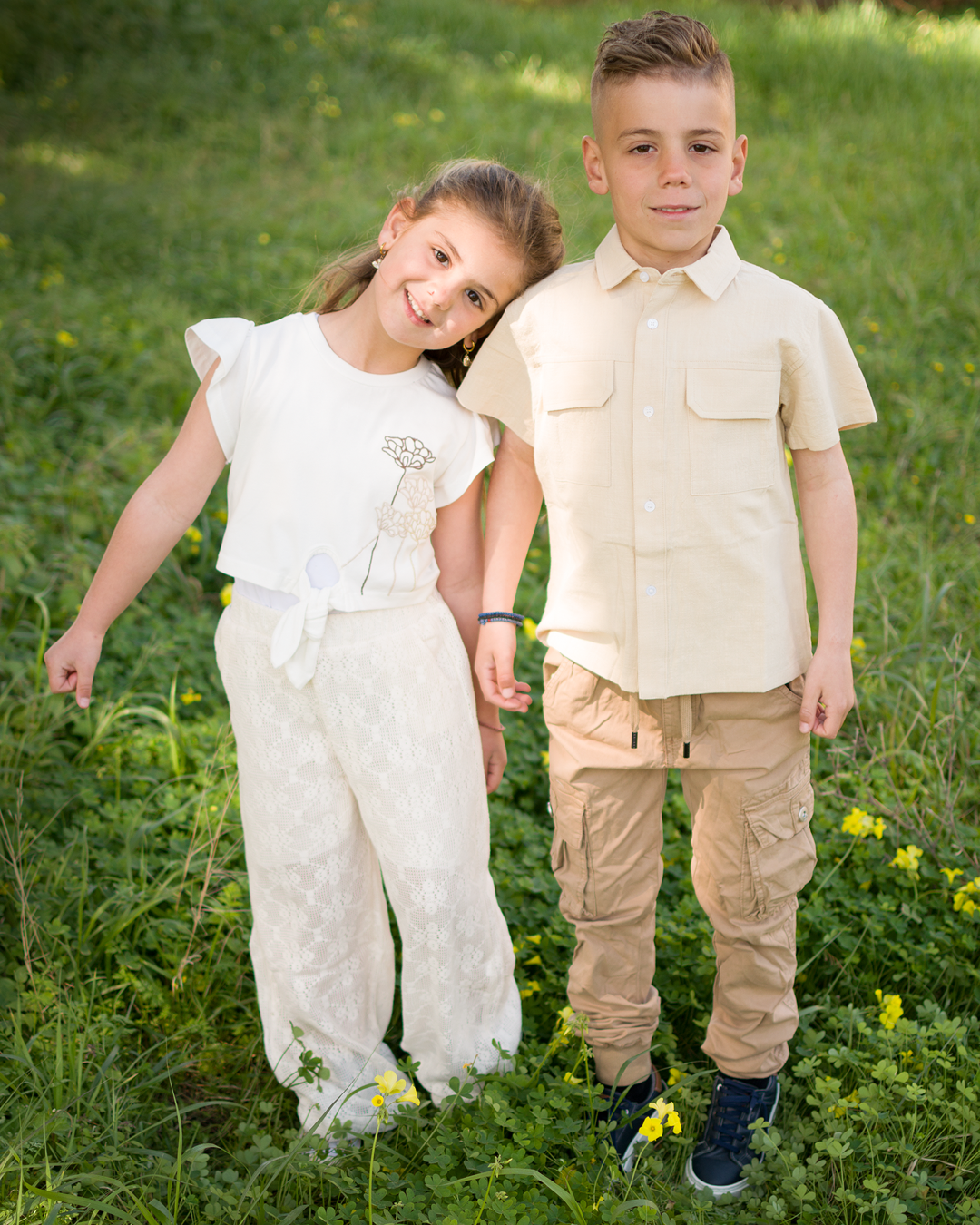 Σετ τοπ με πλεκτη εκρου παντελόνα