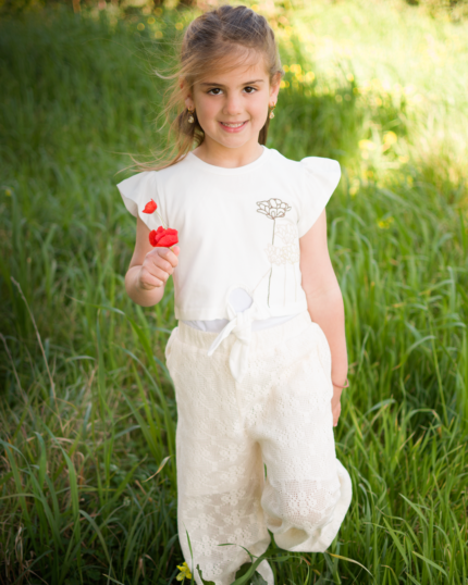 Σετ τοπ με πλεκτη εκρου παντελόνα